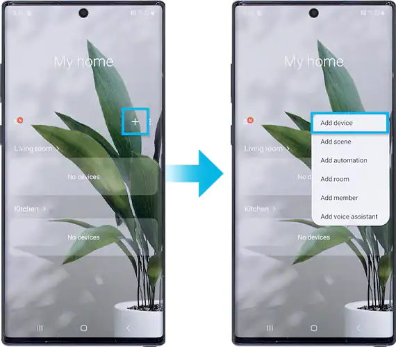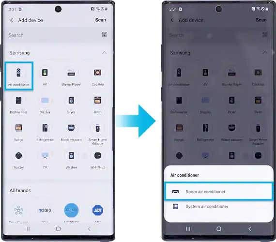 Once you’ve logged into the SmartThings app with your Samsung account, you can then connect your phone to the air conditioner. First, choose ‘Add Device’ on the app and select your air conditioner model.