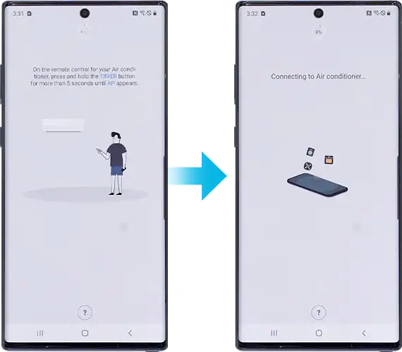 On the air conditioner remote, hold the ‘Timer’ button until the air conditioner icon appears on the app. Then, give it some time to connect.