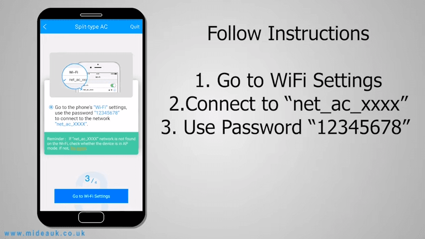 Many Midea air conditioner models are also Wifi enabled. Here’s how to connect your air conditioner to your home Wifi network: